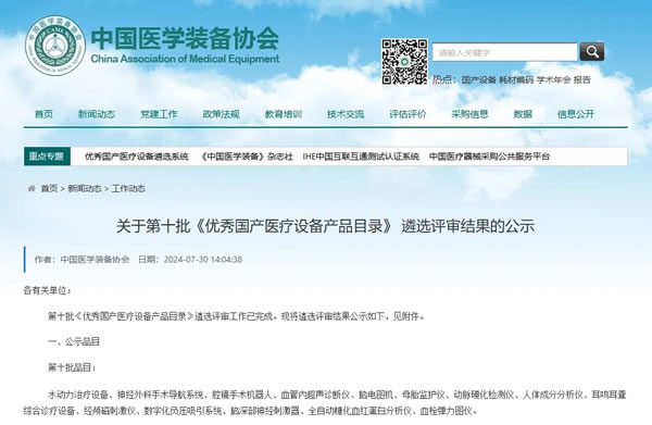 2024年7月30日,由中國醫學裝備協會組織的第十批《優秀國產醫療設備產品目錄》遴選評審工作已完成,評審結果開放公示。由南京科進實業有限公司自主研發生產的動脈硬化檢測儀、人體成分分析儀全系產品成功入選!